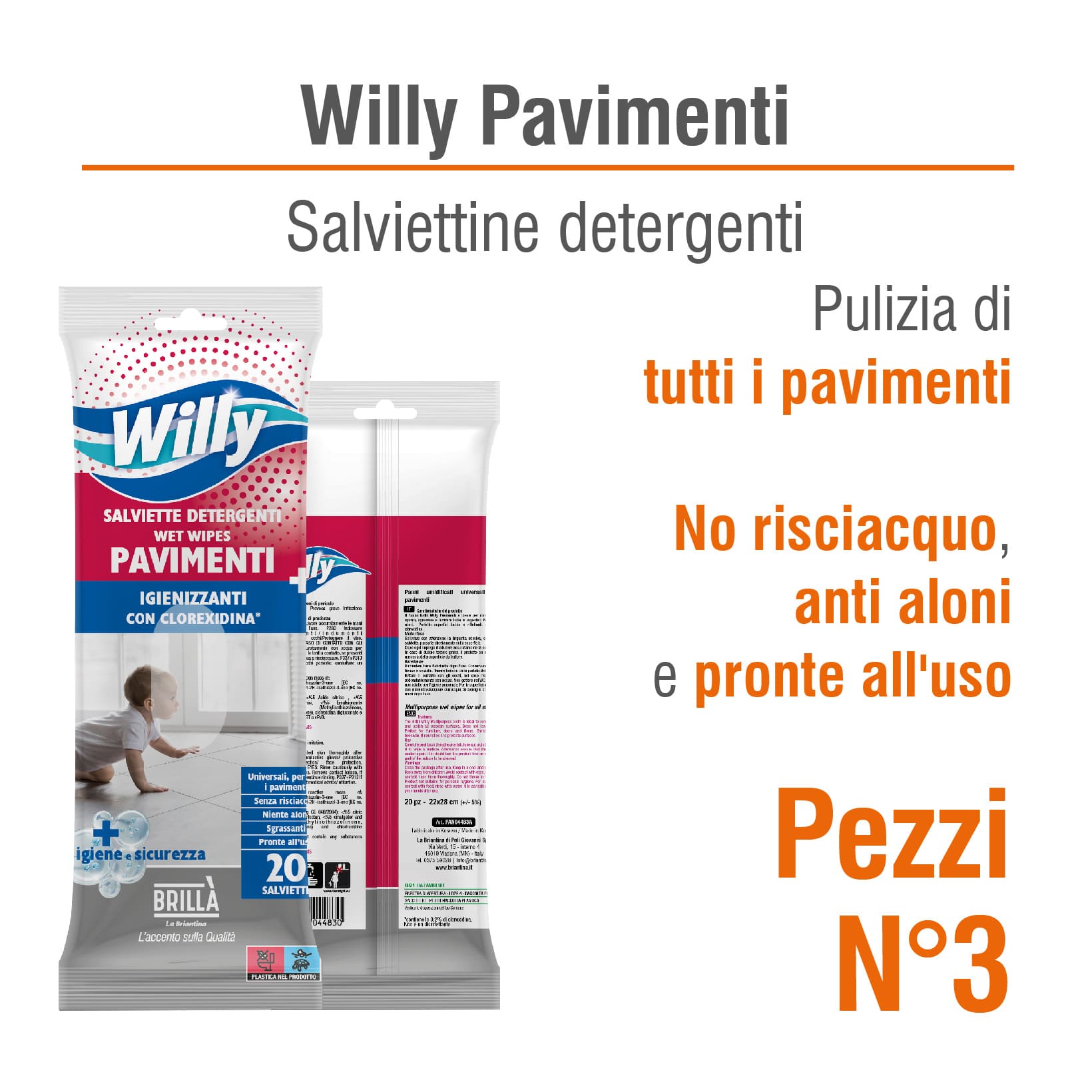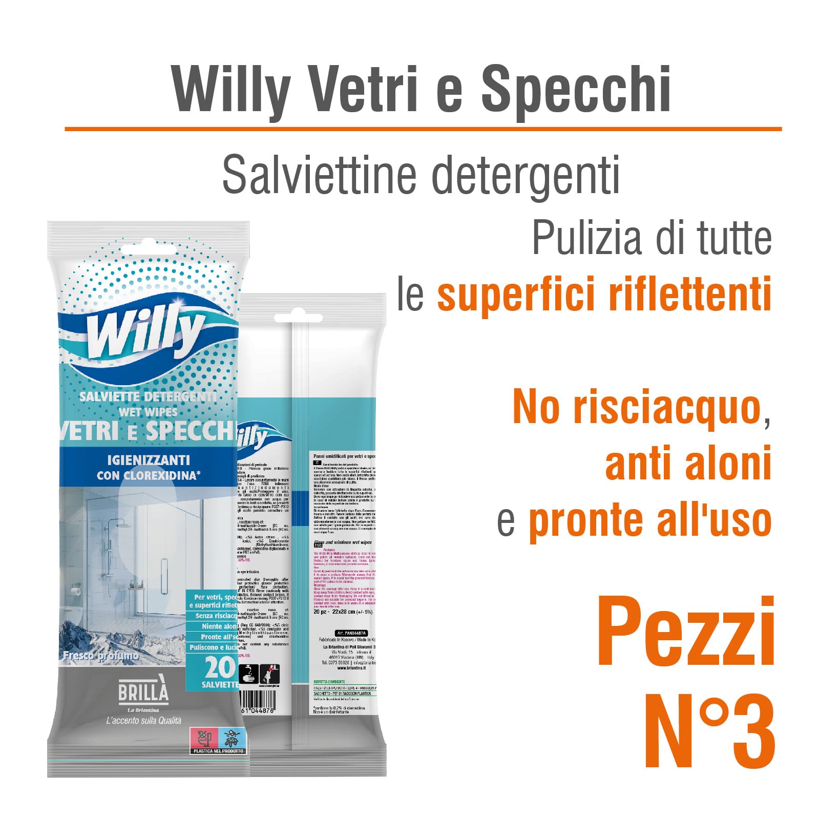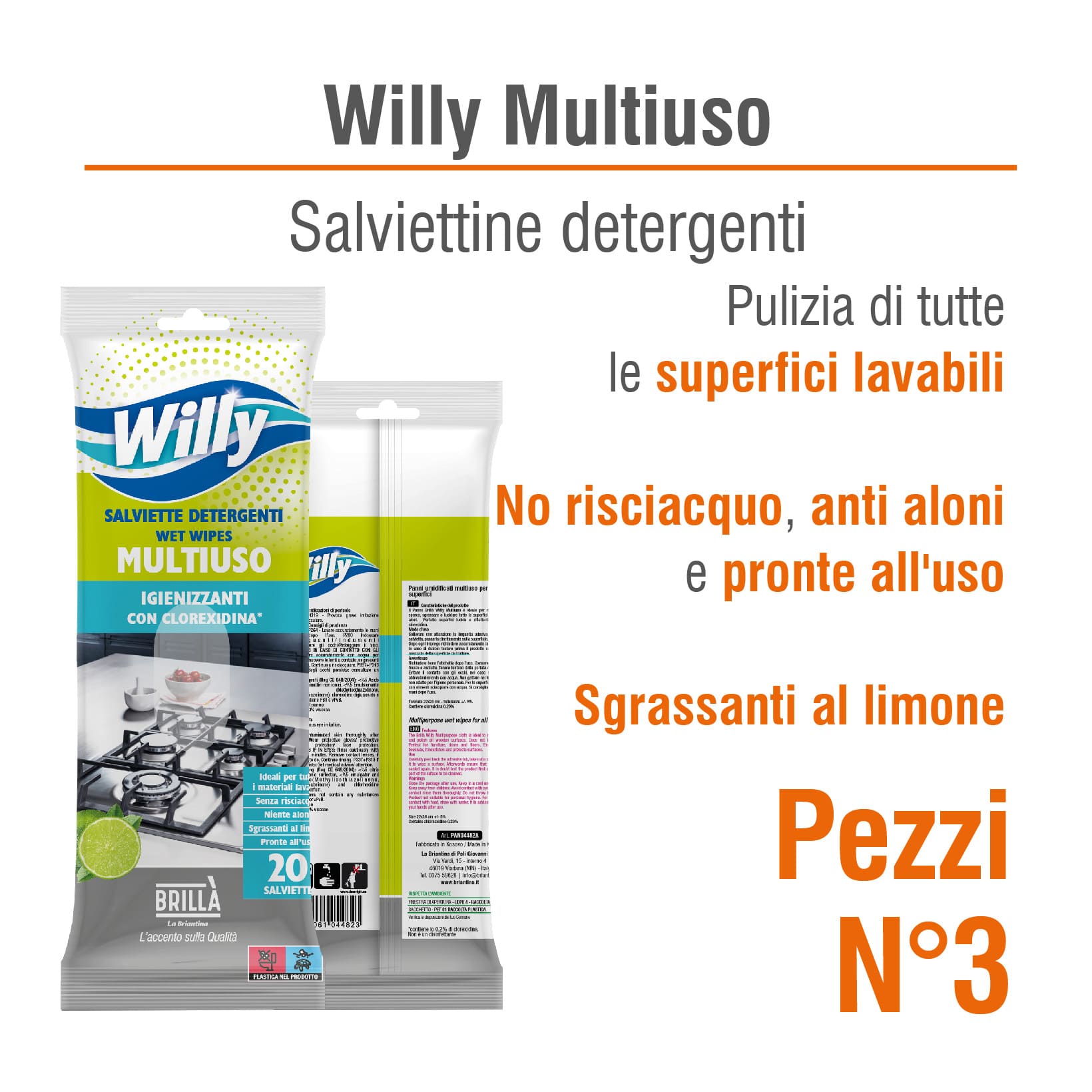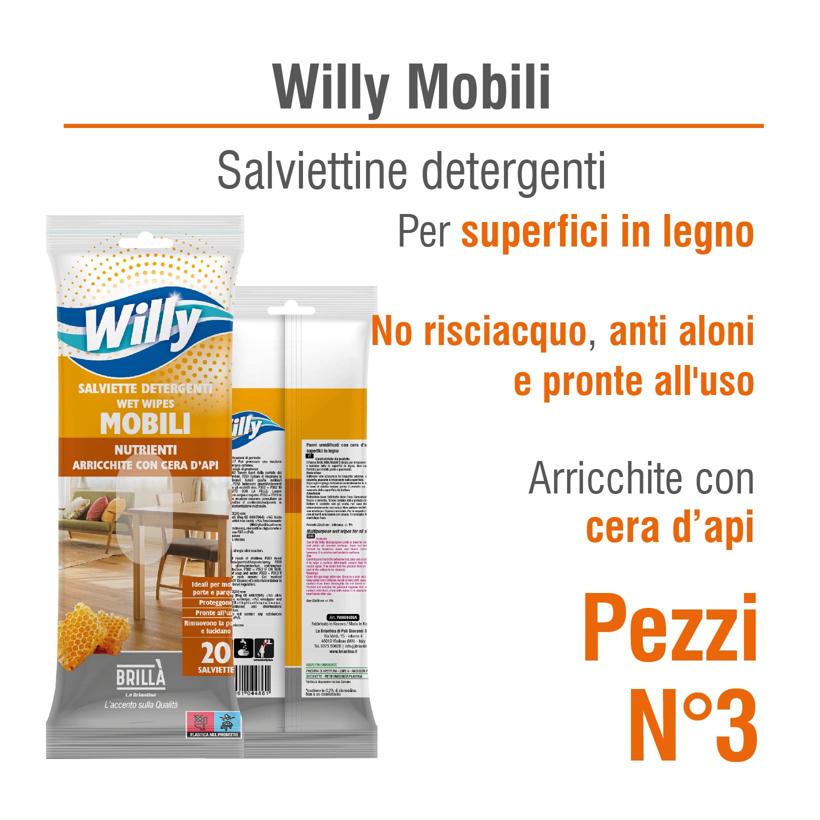 🟡 I panni umidificati Willy sono pronti all’uso e non necessitano di risciacquo. La versione per mobili è aromatizzata al limone e ideale per legno e porte, la versione multiuso sgrassa a fondo ed è perfetta per la cucina, quella per vetri e specchi elimina aloni e fa brillare, mentre la versione per pavimenti deterge e profuma con la sua azione sgrassante.