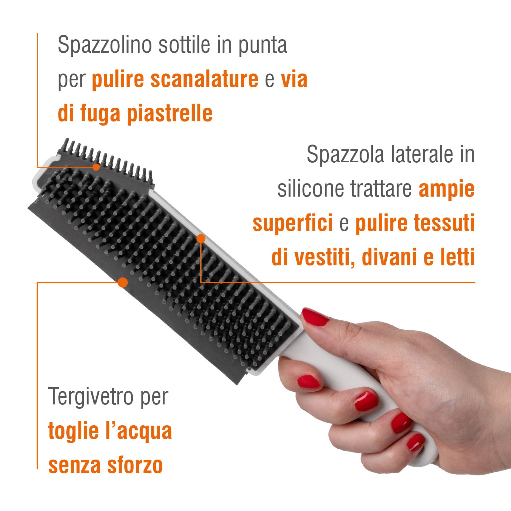 🟡 Spatole e spazzole multifunzione includono lo spazzolino lavapiatti Ventosa e le spazzole 3 in 1 e 2 in 1 per superfici e tessuti. L’attrezzo Zanzanetto consente una pulizia efficace delle zanzariere.
