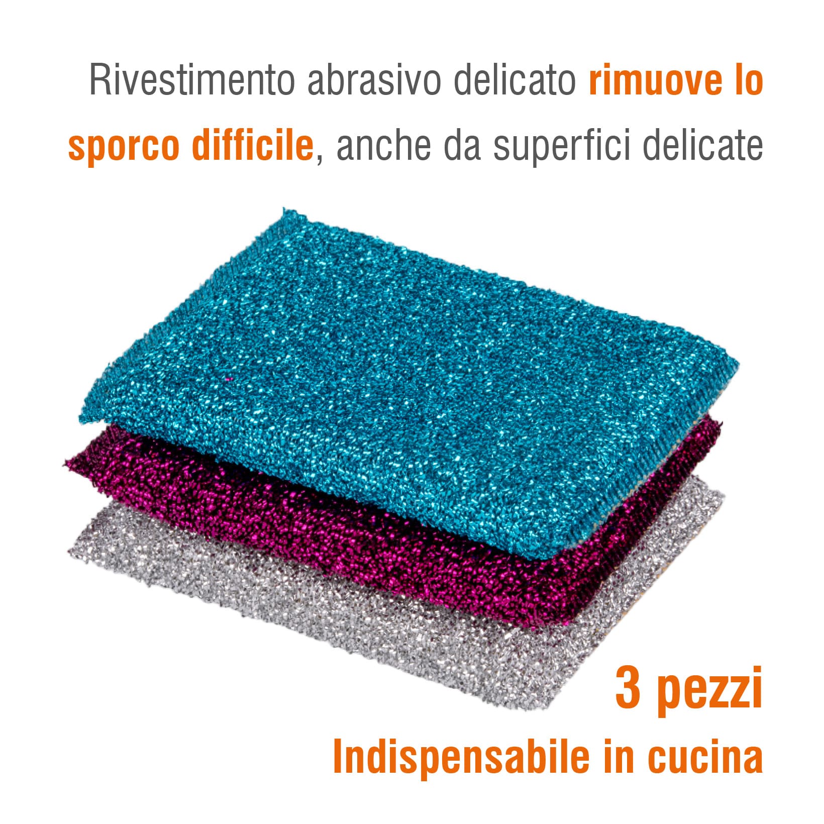 I colori o fantasie dei seguenti prodotti sono assortiti e potrebbero differire rispetto all’immagine: Guanto spolvero Fly maxi millepunte e Spugna scrostatutto in poliestere 20 g.