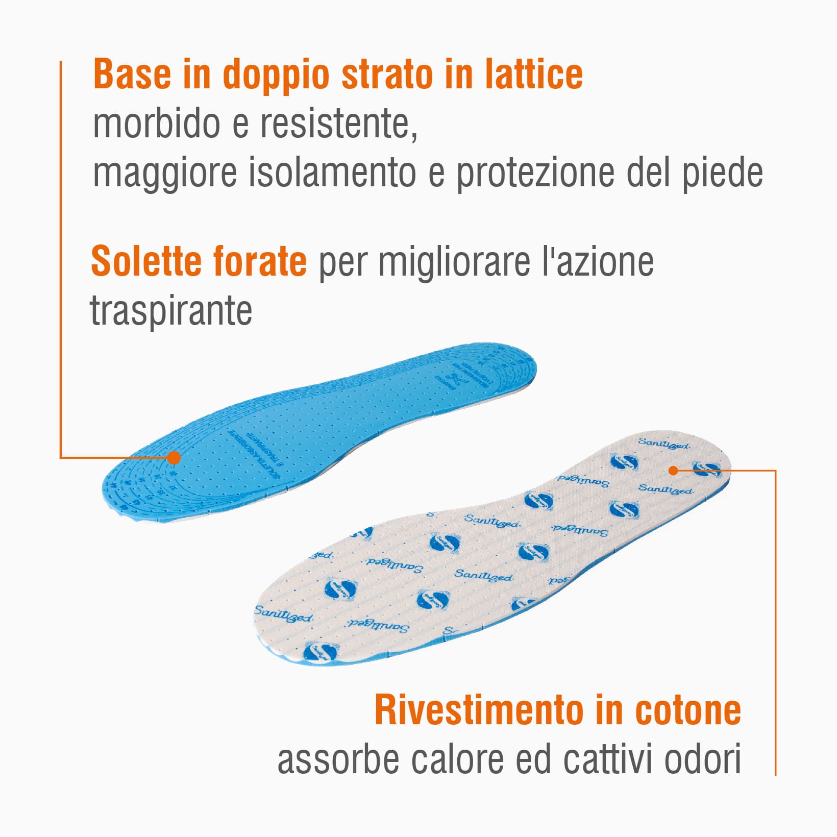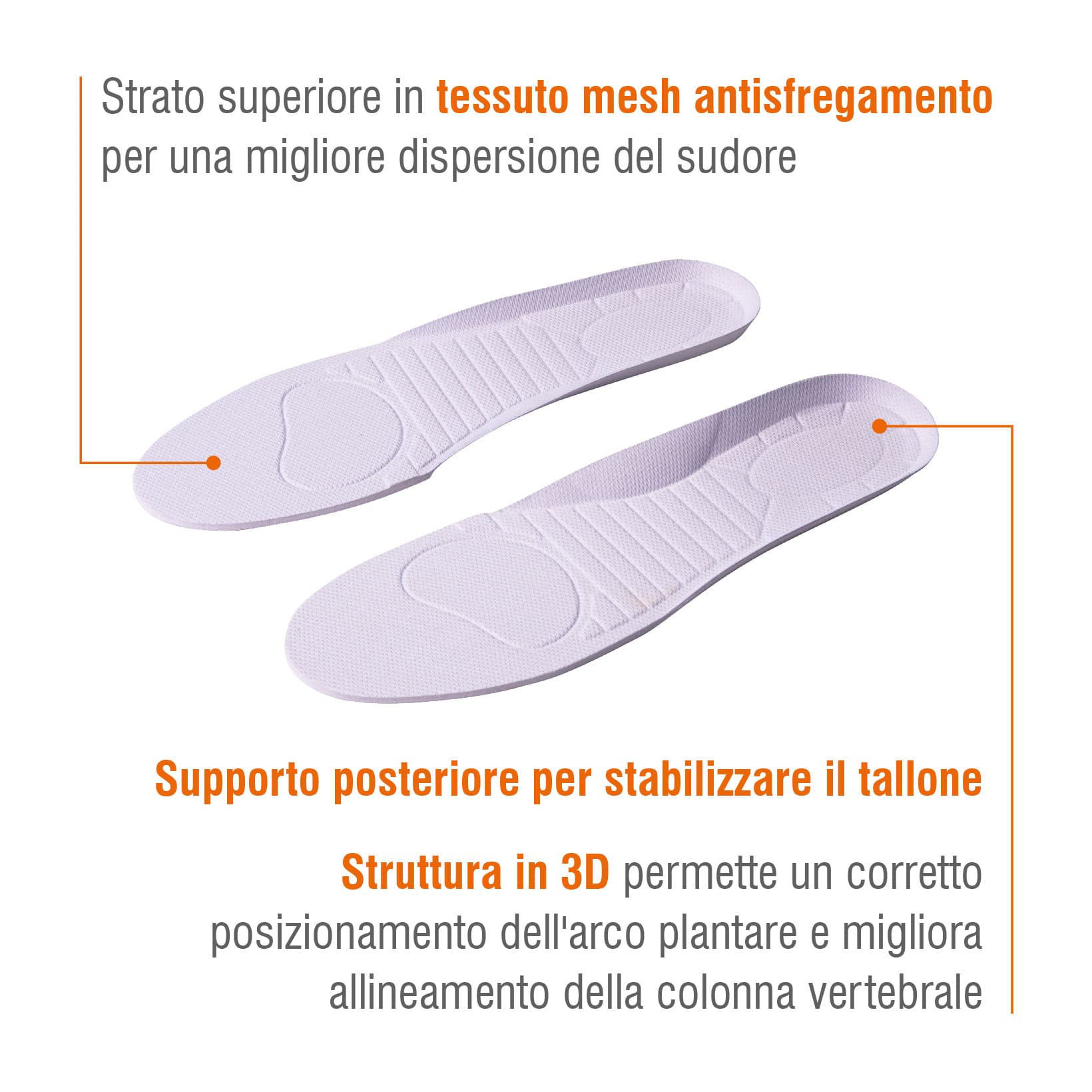 ULTERIORI AVVERTENZE PER SOTTOPIEDI E SOLETTE: Per una maggiore durata della soletta, consigliamo di toglierla dalla calzatura dopo l’uso e di lasciarla ad asciugare lontano da fonti di calore.