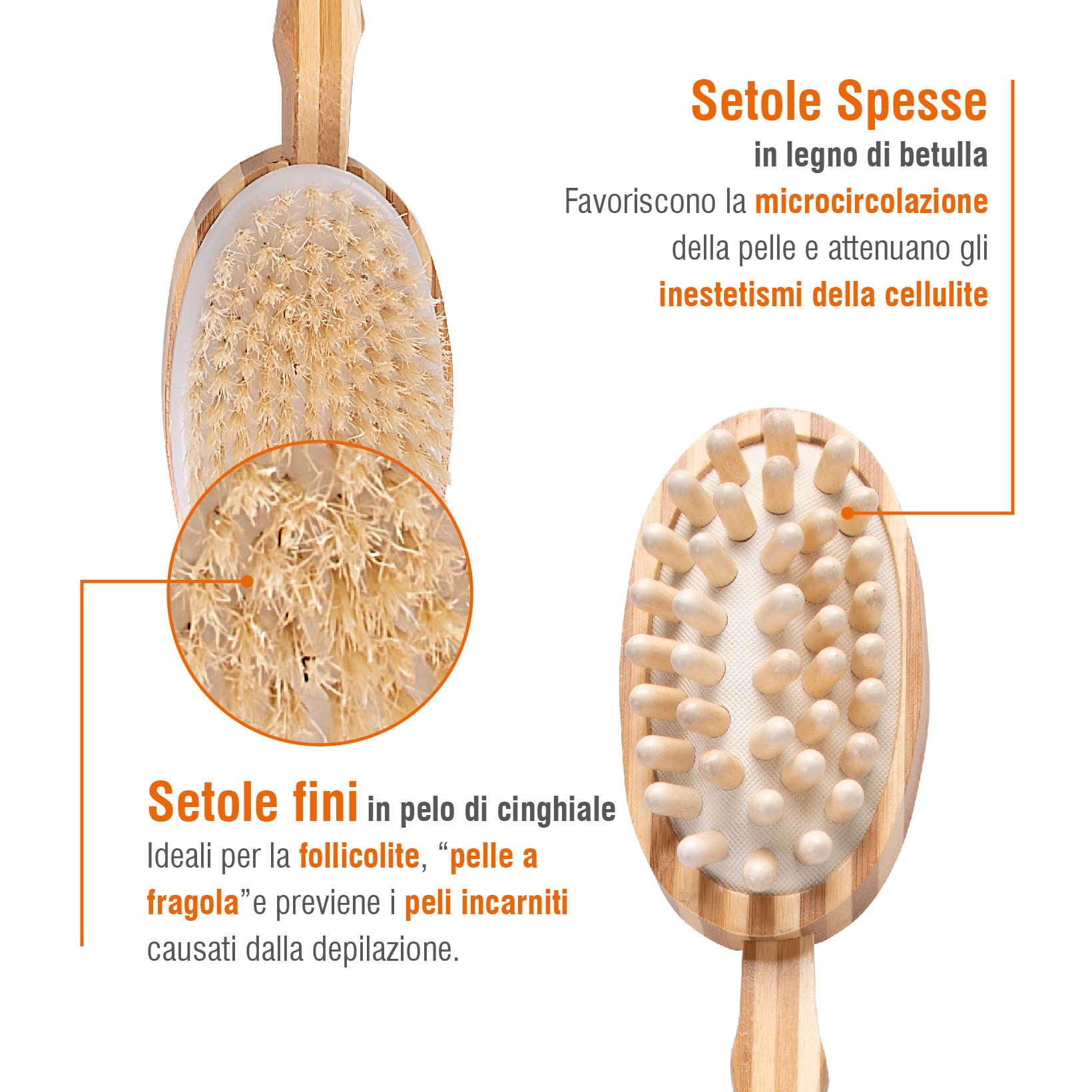 ULTERIORI AVVERTENZE PER LA SPAZZOLA LAVASCHIENA BAMBOO MASSAGE: Utilizzare sulla pelle bagnata.