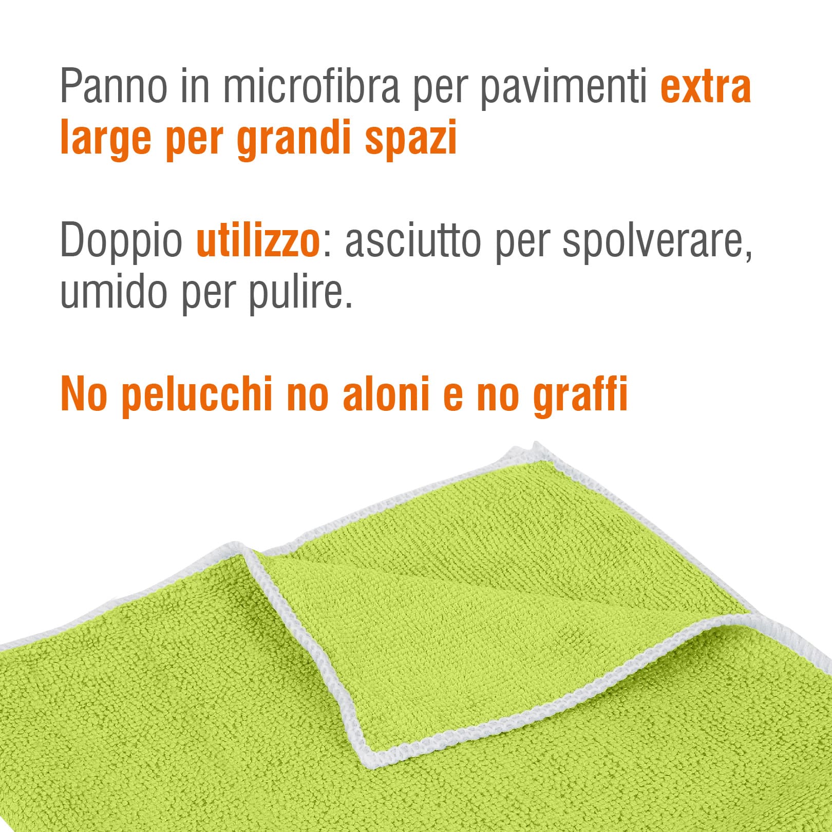 Grazie al formato extra large 50×70 cm, riduce i tempi di pulizia e assicura un risultato uniforme anche su superfici delicate come parquet e marmo. È lavabile in lavatrice a 40°C e riutilizzabile più volte, per una pulizia professionale e conveniente.