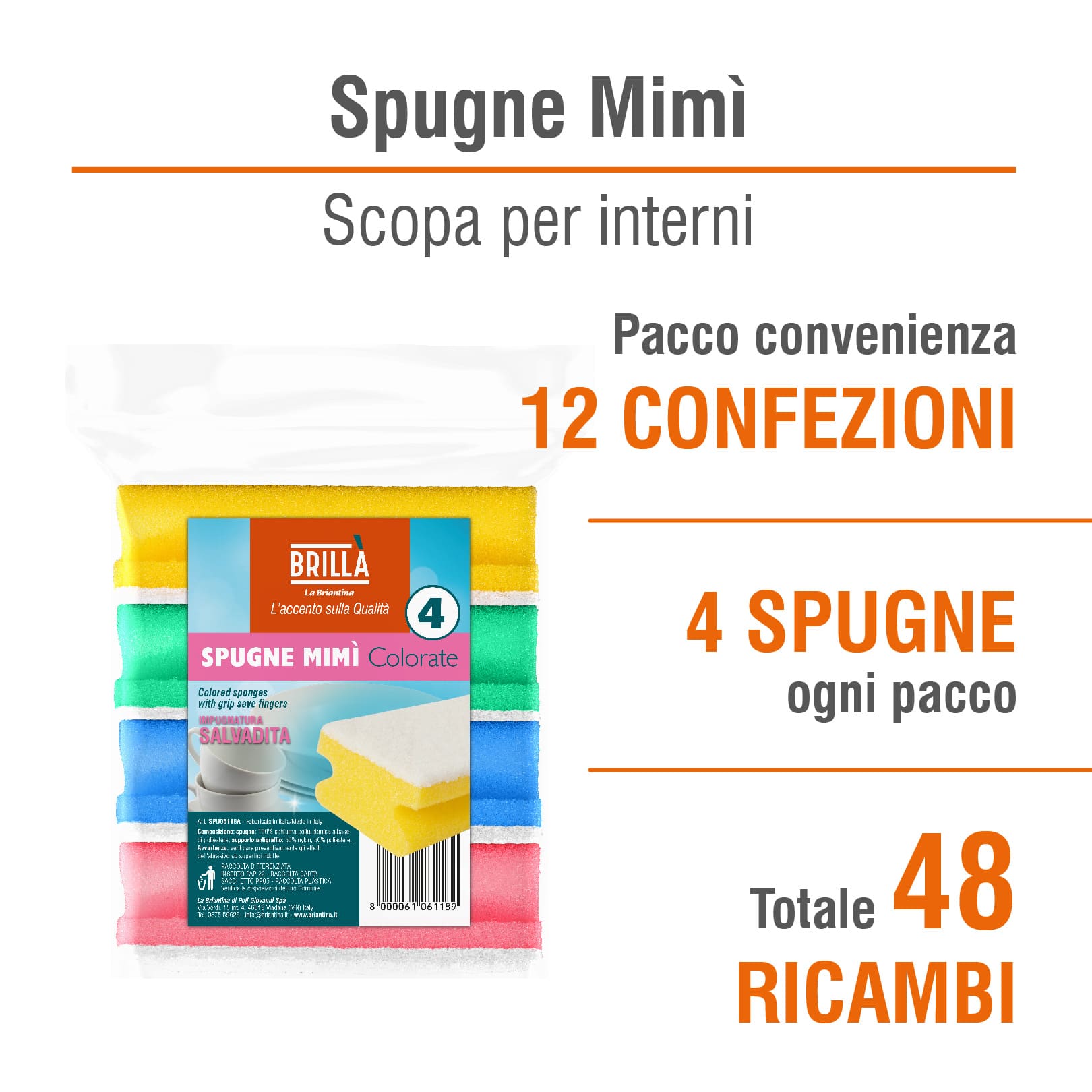 📦 Contenuto: 48 spugne (12 confezioni da 4)