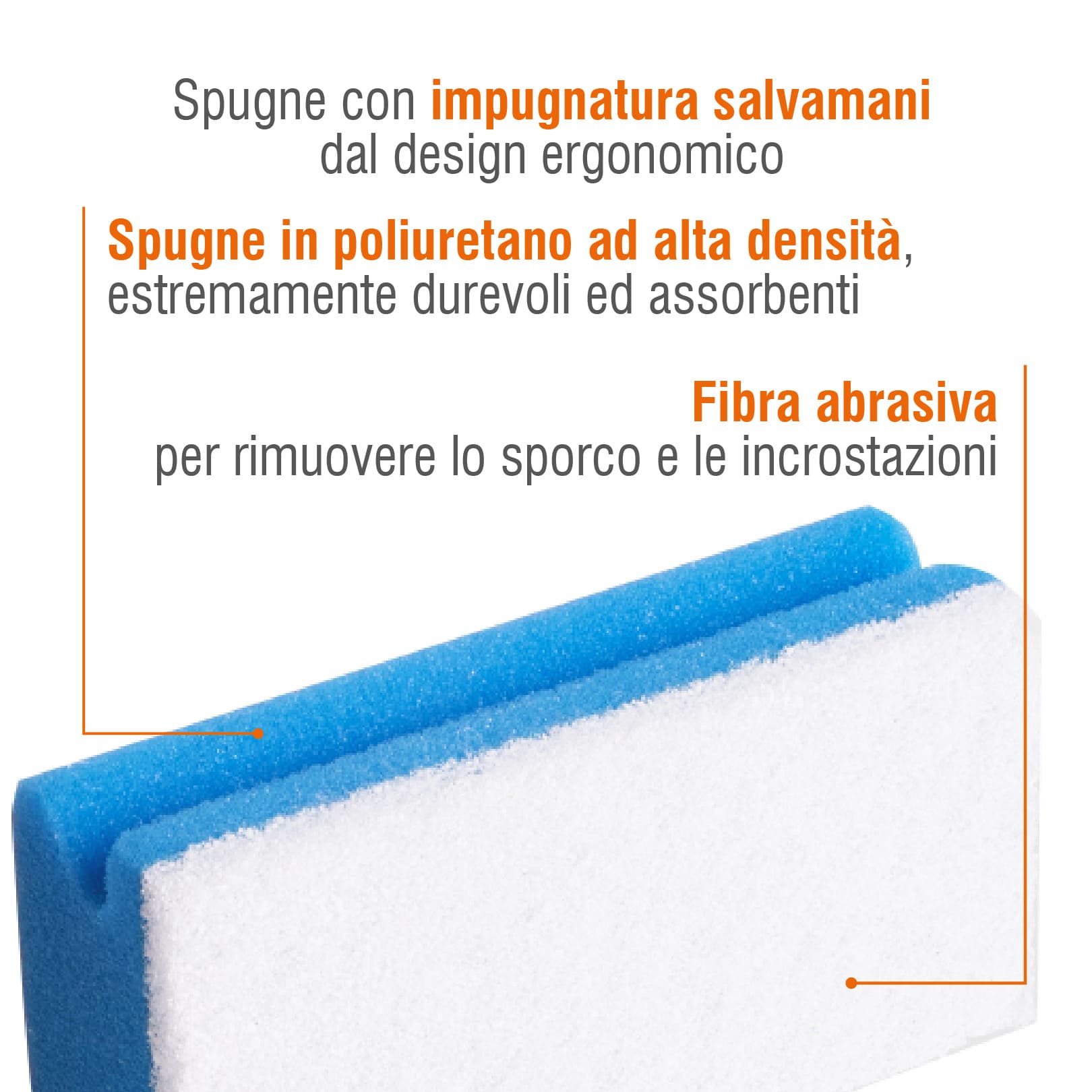🧵 Composizione: spugna in schiuma poliuretanica a base di poliestere, lato abrasivo in nylon e poliestere