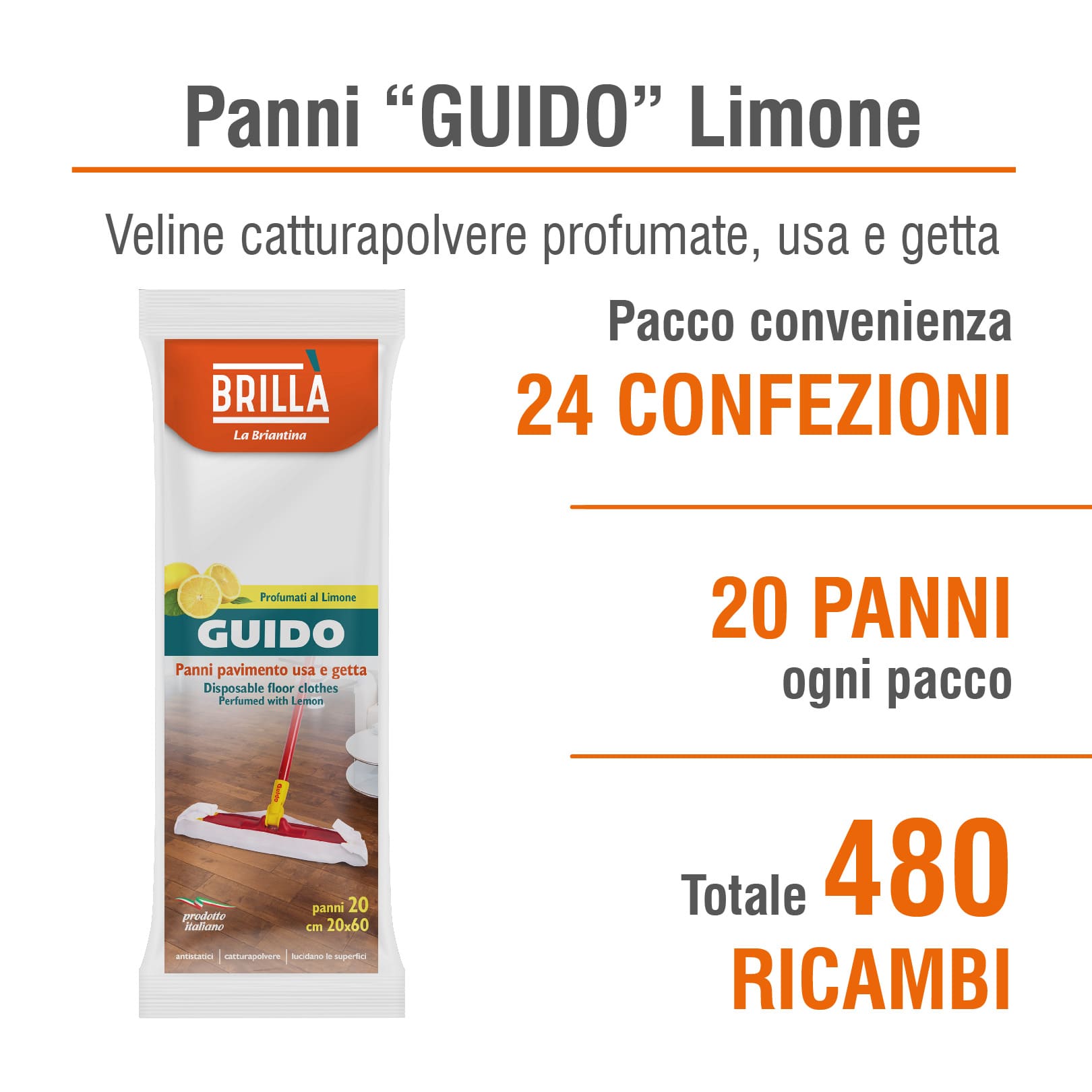 Dona alla pulizia dei pavimenti una ventata di freschezza agrumata con il Pacco Convenienza Veline Pavimento Guido al Limone: i panni usa e getta, adatti per spazzoloni da 40 cm. Le Veline Guido al limone uniscono la massima efficacia nella rimozione dello sporco a una fresca e piacevole fragranza agrumata. Catturano al primo passaggio polvere, capelli, peli e briciole da ogni tipo di pavimento, lasciando la casa pulita e profumata.