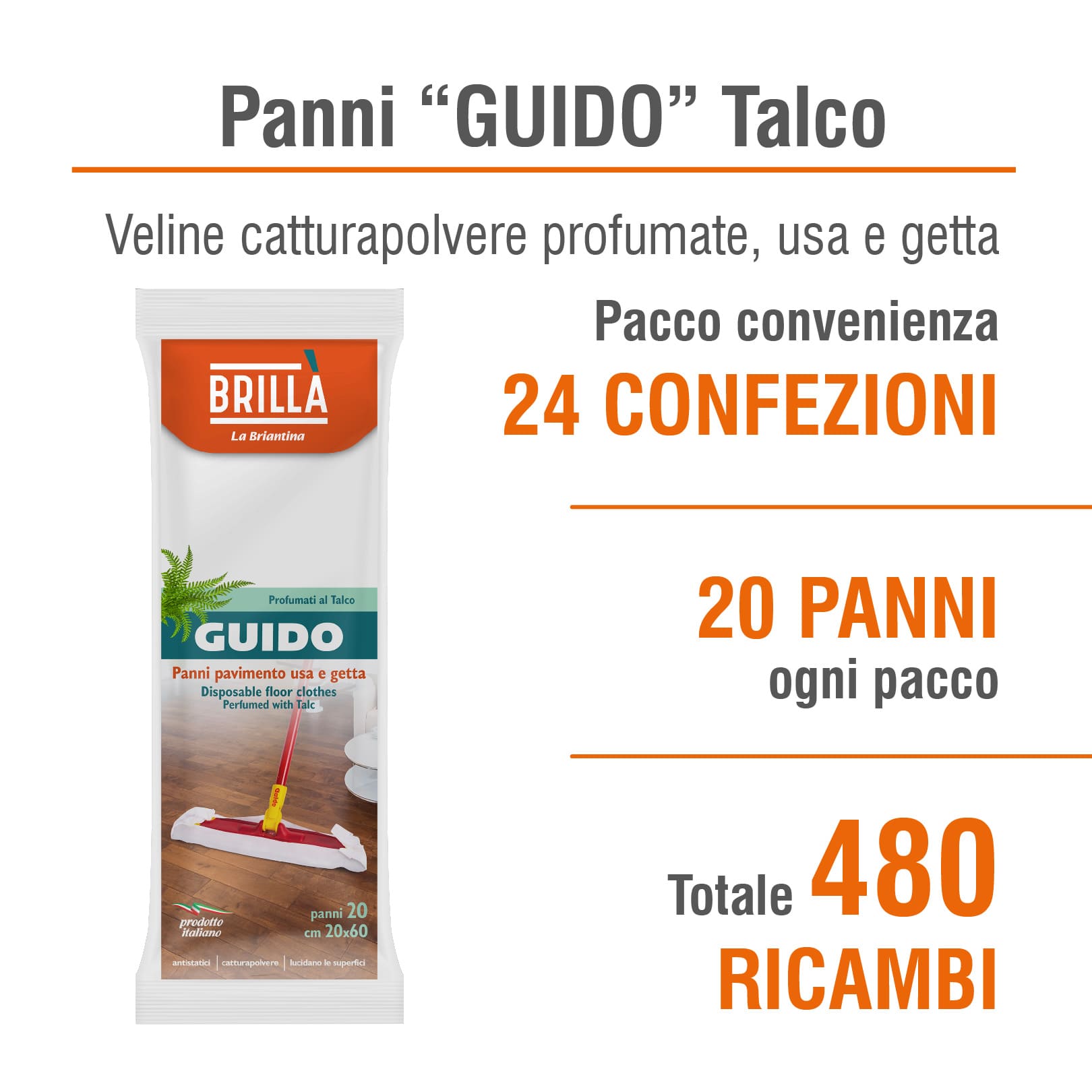 📦 Contenuto: 480 panni (24 confezioni da 20)